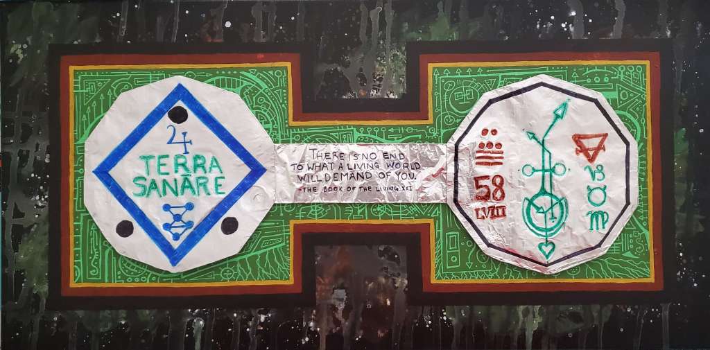 Talismans and other mystical objects often include quotations from holy texts, and so I wanted to honor The Book of the Living by Octavia Butler in this talisman. Environmental change is not an easy road and will require great change and sacrifice from us all. It is an ongoing struggle with no end, as we must move in harmony with the world until we return to it.